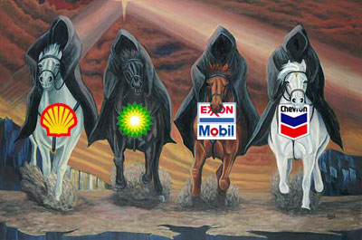 The Four Horsemen of Banking (Bank of America, JP Morgan Chase, Citigroup and Wells Fargo) own the Four Horsemen of Oil (Exxon Mobil, Royal Dutch/Shell, BP and Chevron Texaco); in tandem with Deutsche Bank, BNP, Barclays and other European old money behemoths. But their monopoly over the global economy does not end at the edge of the oil patch.